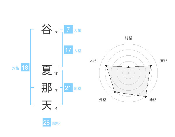 谷 夏那天さんを姓名の画数から五運を鑑定