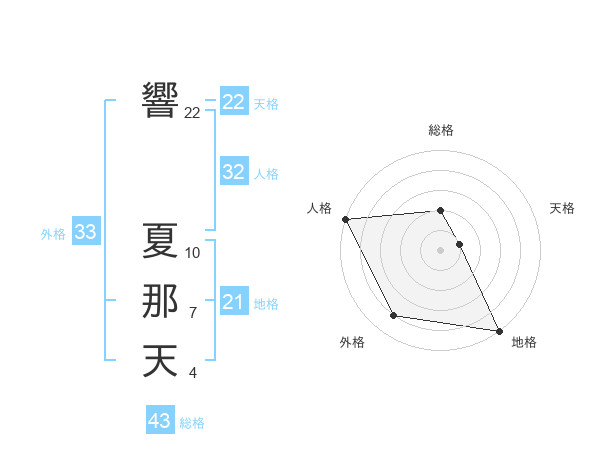 響 夏那天さんの総格は43画の2点!