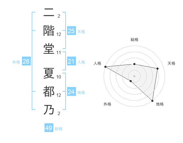 二階堂 夏都乃さんの天格は25画の4点!
