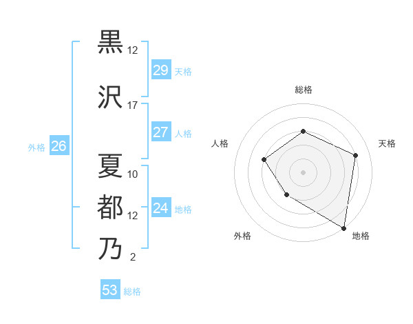 黒沢 夏都乃さんを姓名の画数から五運を鑑定