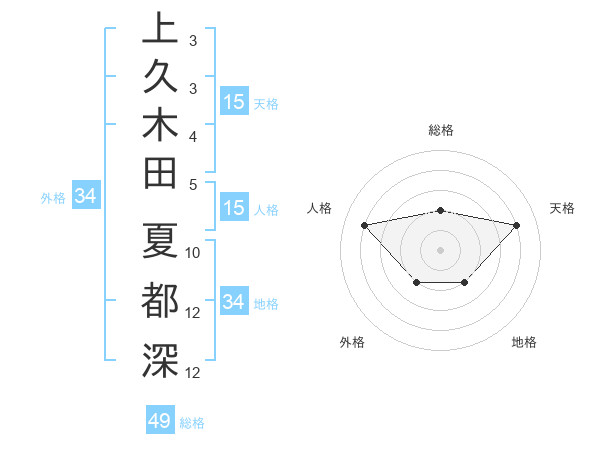 上久木田 夏都深さんの総格は49画の2点!