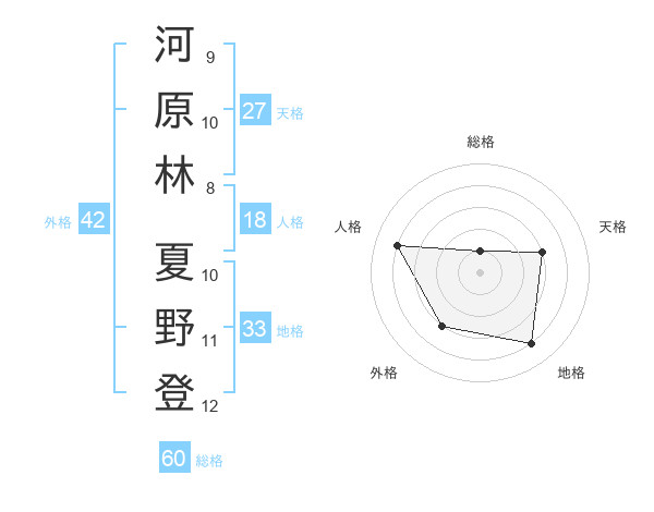 河原林 夏野登さんの総格は60画の1点!