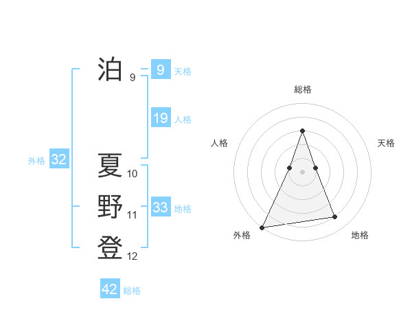 泊 夏野登さんを姓名の画数から五運を鑑定