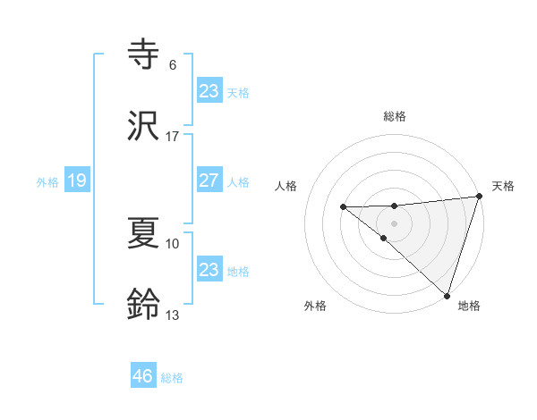 寺沢 夏鈴さんの天格は23画の5点!