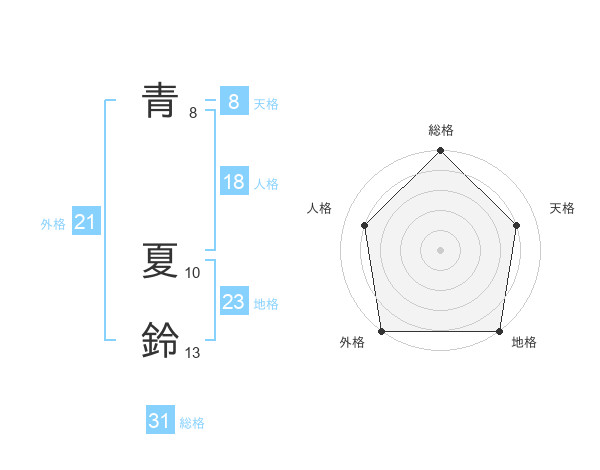 青 夏鈴さんの総格は31画の5点!