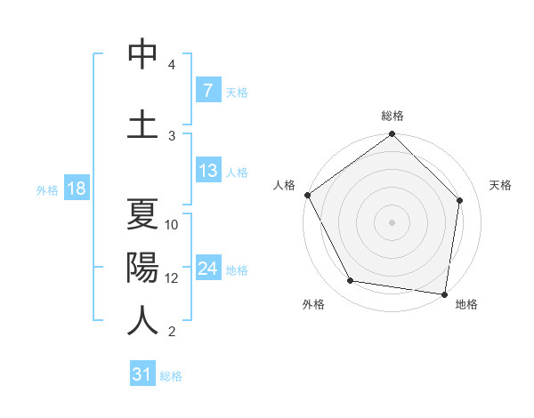 中土 夏陽人さんの総格は31画の5点!