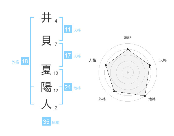 井貝 夏陽人さんの総格は35画の4点!