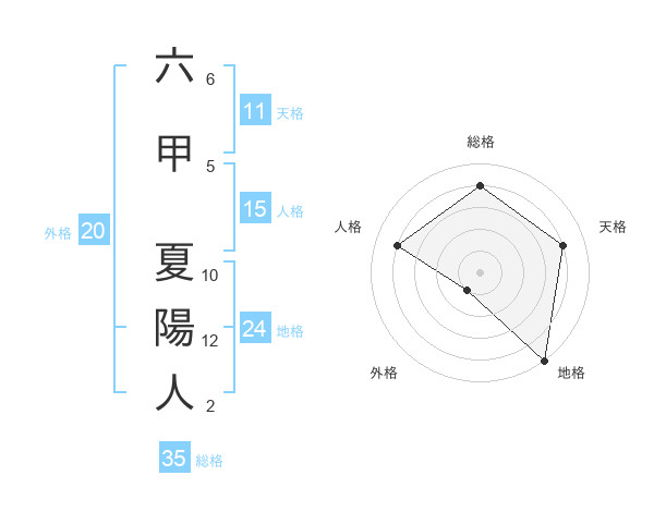 六甲 夏陽人さんを姓名の画数から五運を鑑定