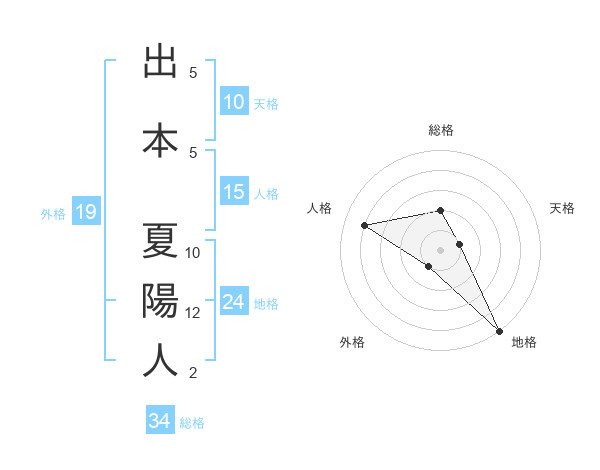 出本 夏陽人さんを姓名の画数から五運を鑑定