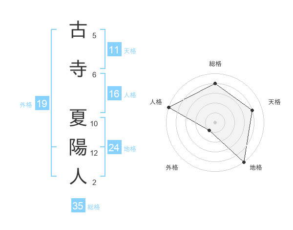 古寺 夏陽人さんを姓名の画数から五運を鑑定