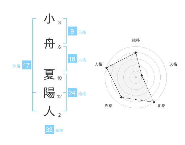 小舟 夏陽人さんの総格は33画の4点!