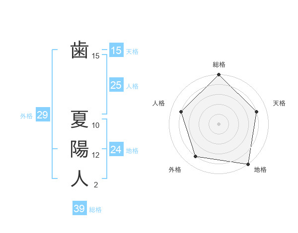 歯 夏陽人さんを姓名の画数から五運を鑑定