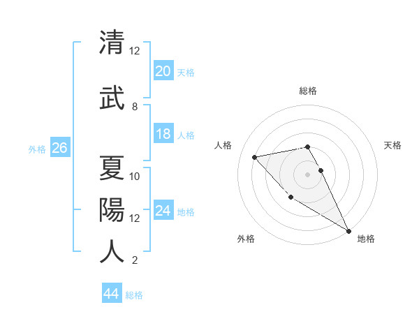 清武 夏陽人さんの天格は20画の1点!