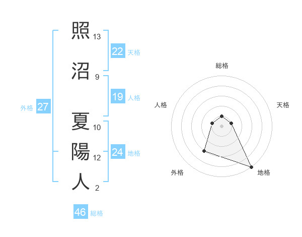 照沼 夏陽人さんの天格は22画の1点!