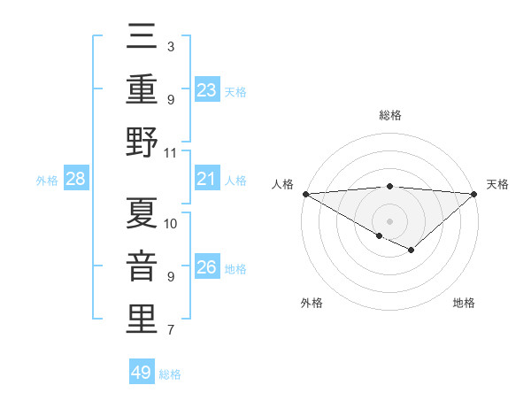 三重野 夏音里さんを姓名の画数から五運を鑑定