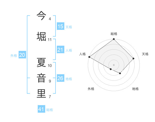 今堀 夏音里さんを姓名の画数から五運を鑑定