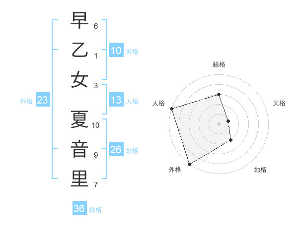 早乙女 夏音里さんを姓名の画数から五運を鑑定