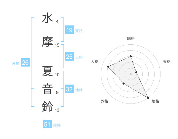 水摩 夏音鈴さんを姓名の画数から五運を鑑定