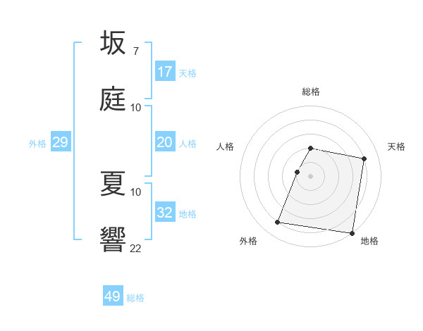 坂庭 夏響さんの総格は49画の2点!