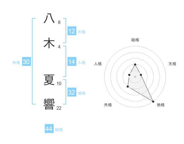 八木 夏響さんの総格は44画の2点!