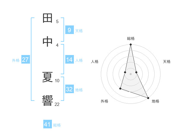 田中 夏響さんの総格は41画の5点!