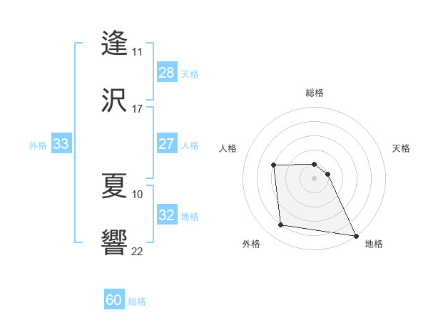 逢沢 夏響さんを姓名の画数から五運を鑑定
