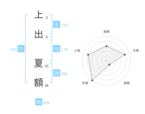 上出 夏額さんの外格は21画の5点!