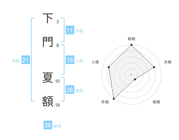 下門 夏額さんの総格は39画の5点!
