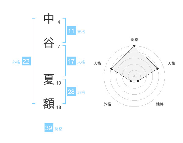 中谷 夏額さんの天格は11画の4点!