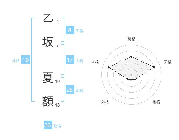 乙坂 夏額さんの外格は19画の1点!