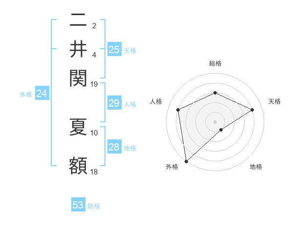 二井関 夏額さんを姓名の画数から五運を鑑定