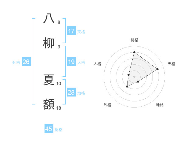 八柳 夏額さんの総格は45画の4点!