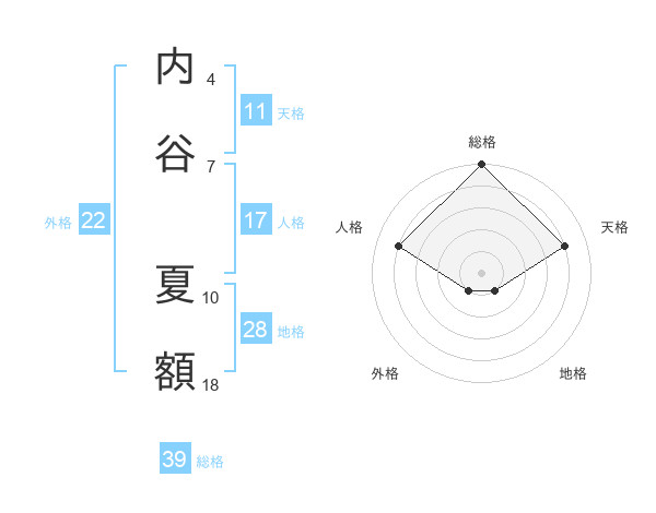 内谷 夏額さんの総格は39画の5点!