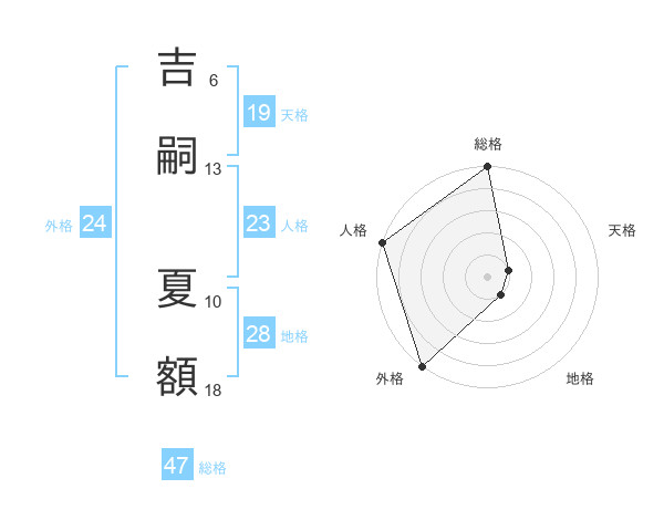 吉嗣 夏額さんの外格は24画の5点!