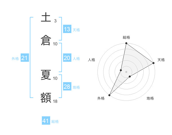 土倉 夏額さんを姓名の画数から五運を鑑定