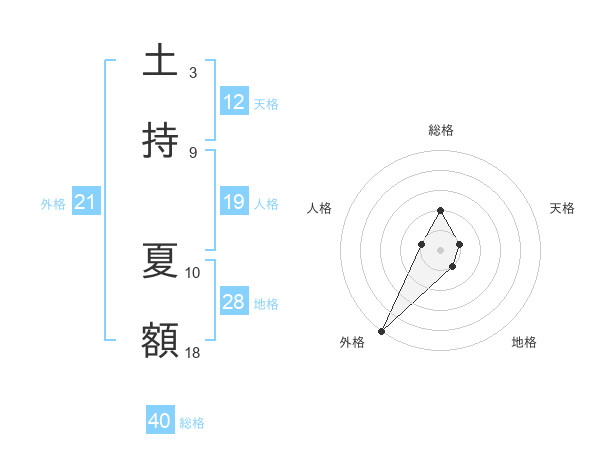 土持 夏額さんの外格は21画の5点!