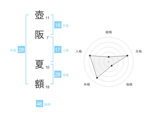 壺阪 夏額さんを姓名の画数から五運を鑑定
