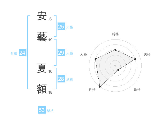 安藝 夏額さんの総格は53画の3点!