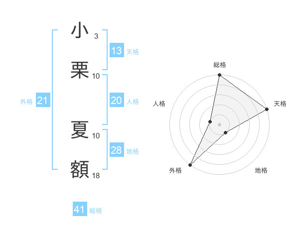 小栗 夏額さんを姓名の画数から五運を鑑定