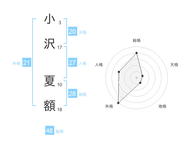小沢 夏額さんを姓名の画数から五運を鑑定