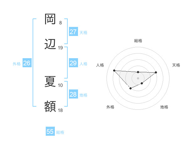 岡辺 夏額さんを姓名の画数から五運を鑑定