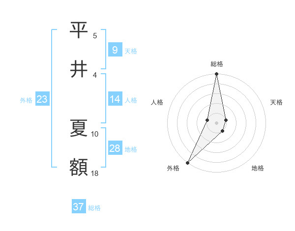 平井 夏額さんの総格は37画の5点!