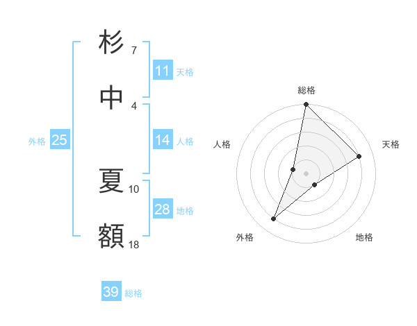 杉中 夏額さんを姓名の画数から五運を鑑定
