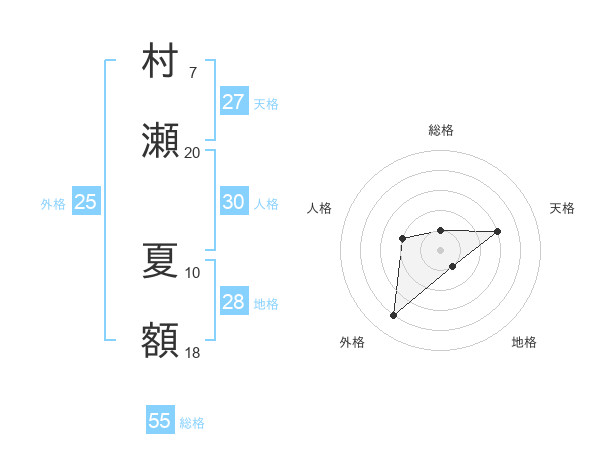 村瀬 夏額さんの天格は27画の3点!