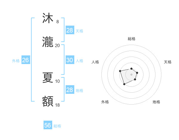 沐瀧 夏額さんを姓名の画数から五運を鑑定