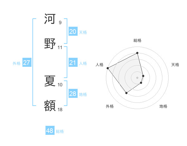 河野 夏額さんの人格は21画の5点!