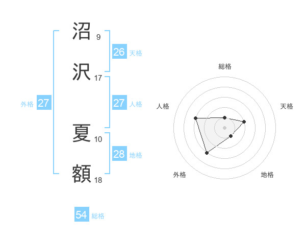 沼沢 夏額さんを姓名の画数から五運を鑑定
