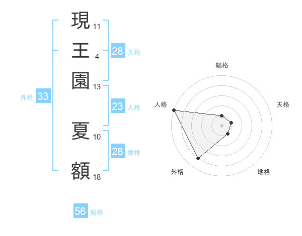 現王園 夏額さんを姓名の画数から五運を鑑定