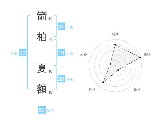 箭柏 夏額さんの総格は52画の4点!