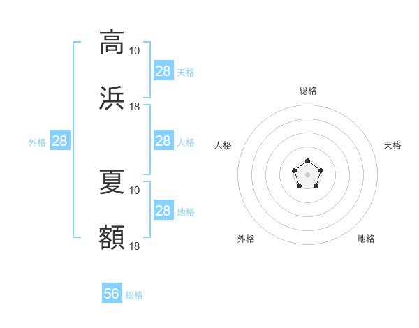 高浜 夏額さんを姓名の画数から五運を鑑定